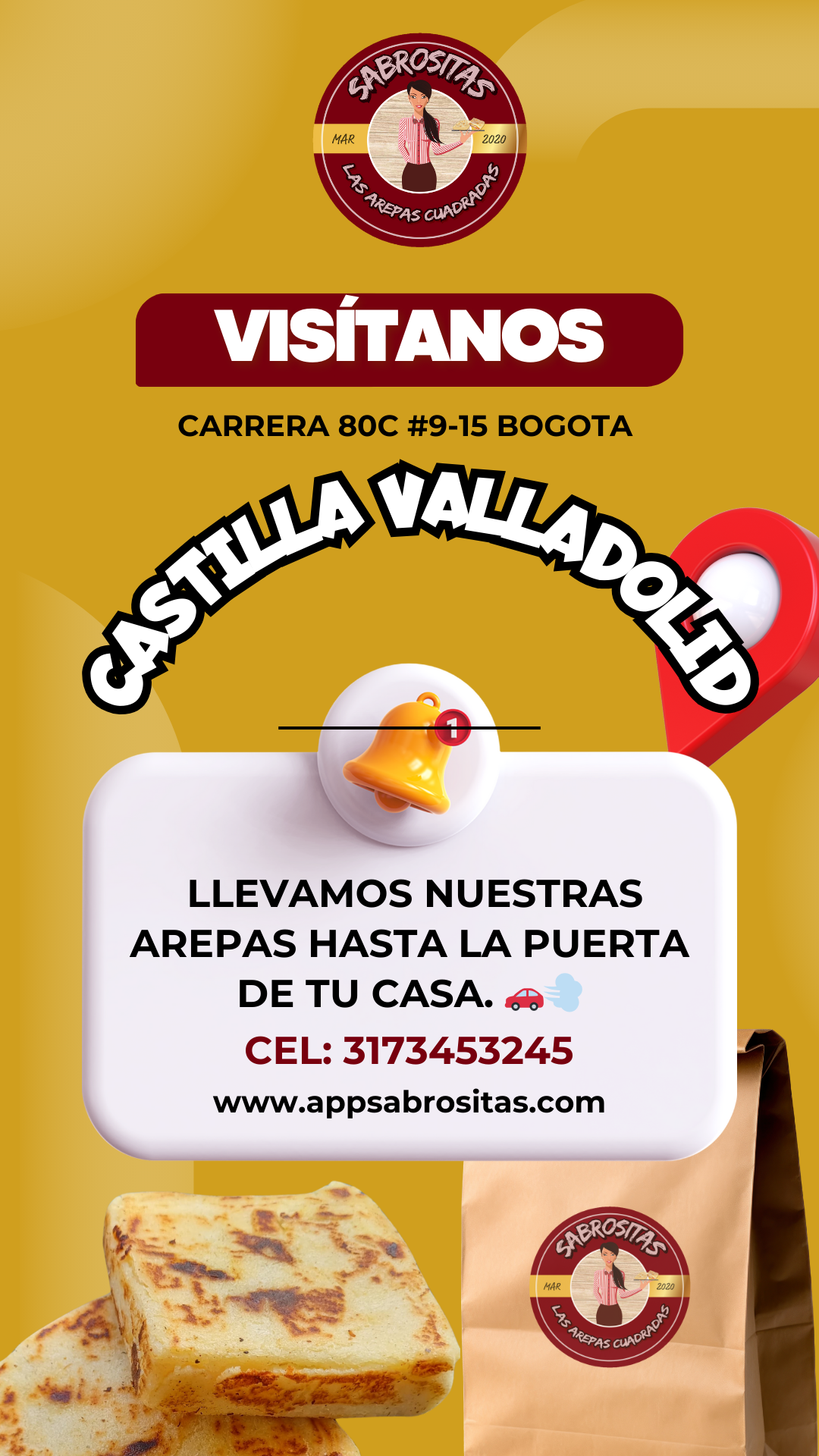 En el corazón del barrio Castilla en Bogotá, te esperamos con las auténticas arepas cuadradas de Sabrositas 🫓✨. Disfruta de nuestros 18 sabores únicos, ideales para acompañar tus tardes y noches con un toque delicioso y especial.